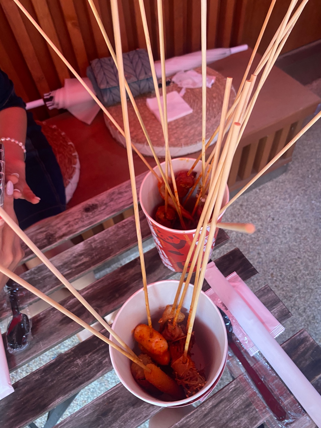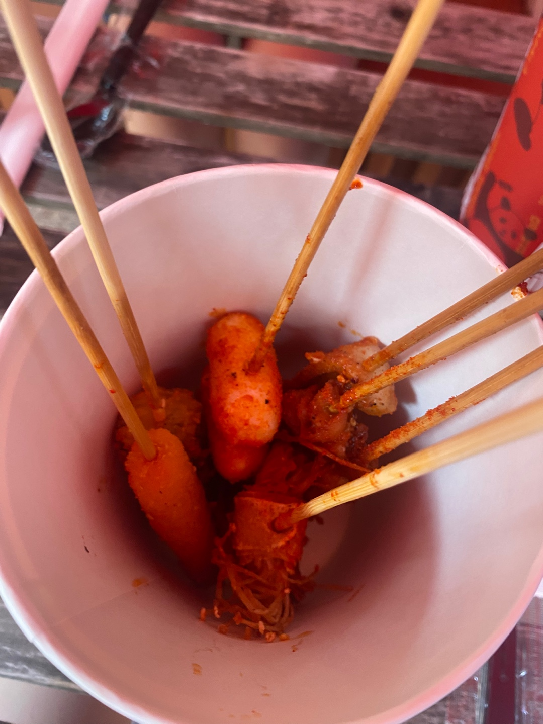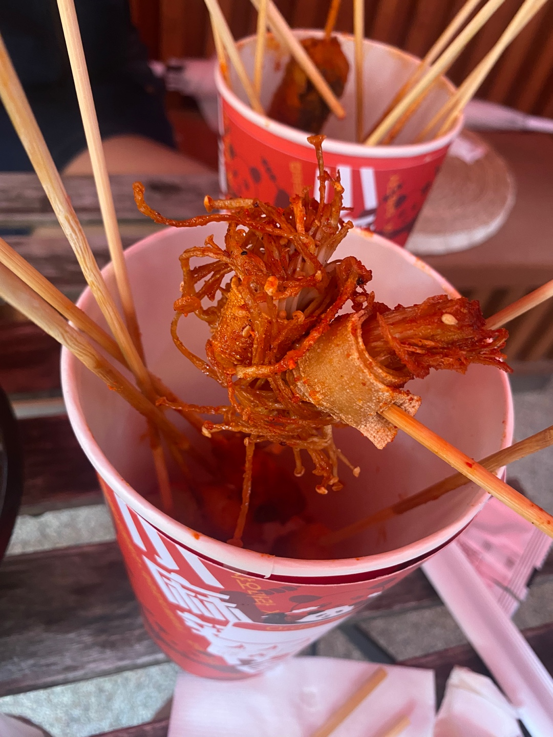 이렇게 맛있는 꼬치들을 길거리에서 컵마라 형태로 즐길 수 있다는 점이에요.