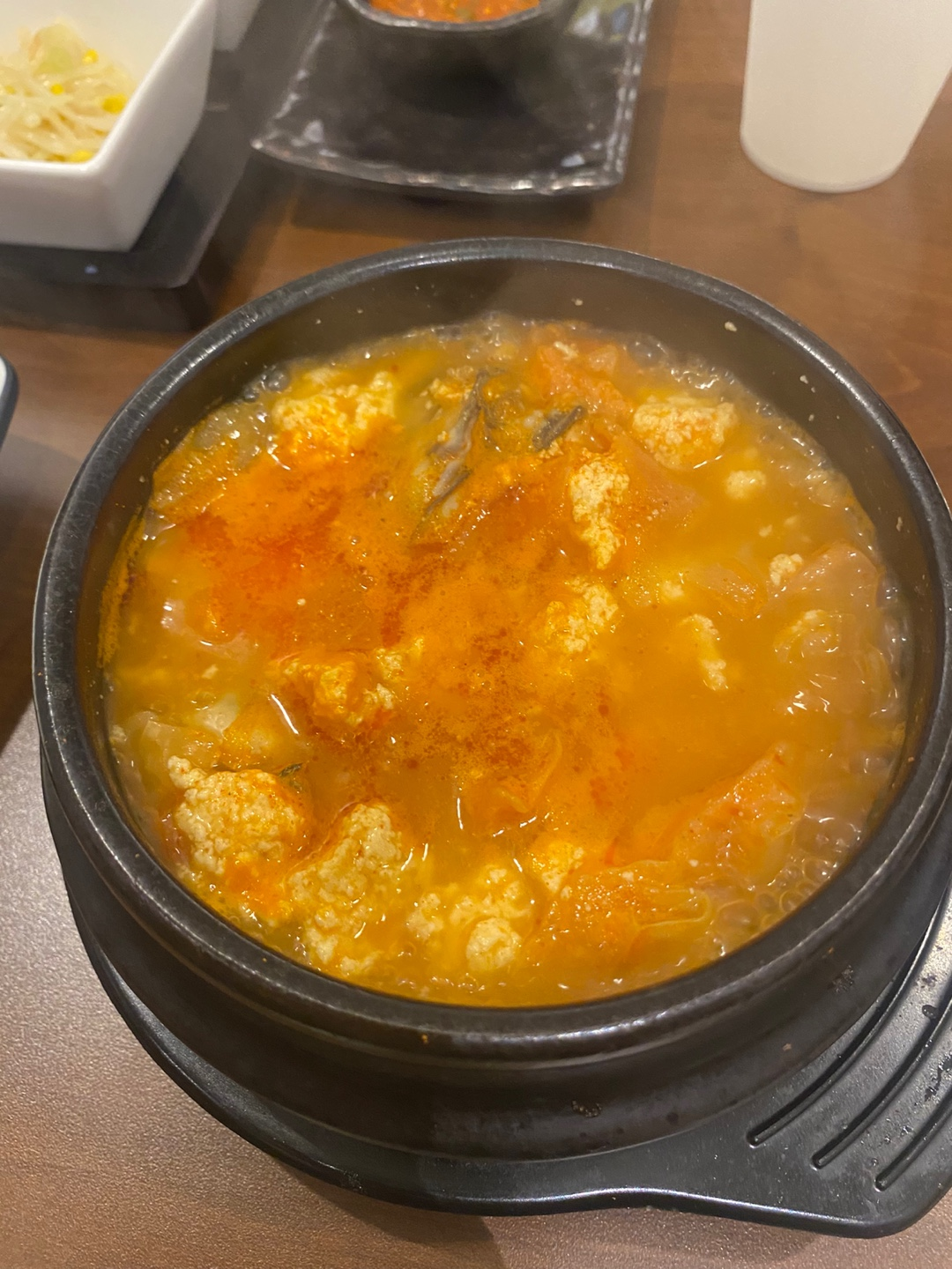 멸치·조개 육수에 반숙 계란이 올라간 얼큰 순두부! 칼칼한데 담백하고 든든해요. 속까지 따뜻해지는 느낌~